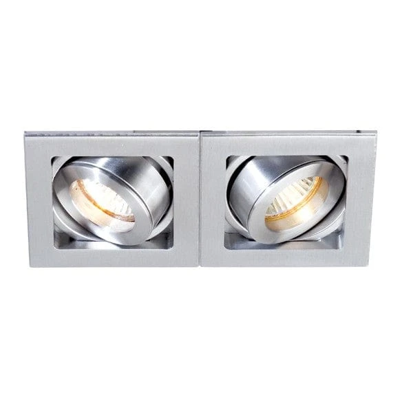 Aurora 240 volt GU10 aluminium adjustable multiple. These recessed multiples are made from aluminium and steel. Adjustable on two axes to allow precise direction of light.