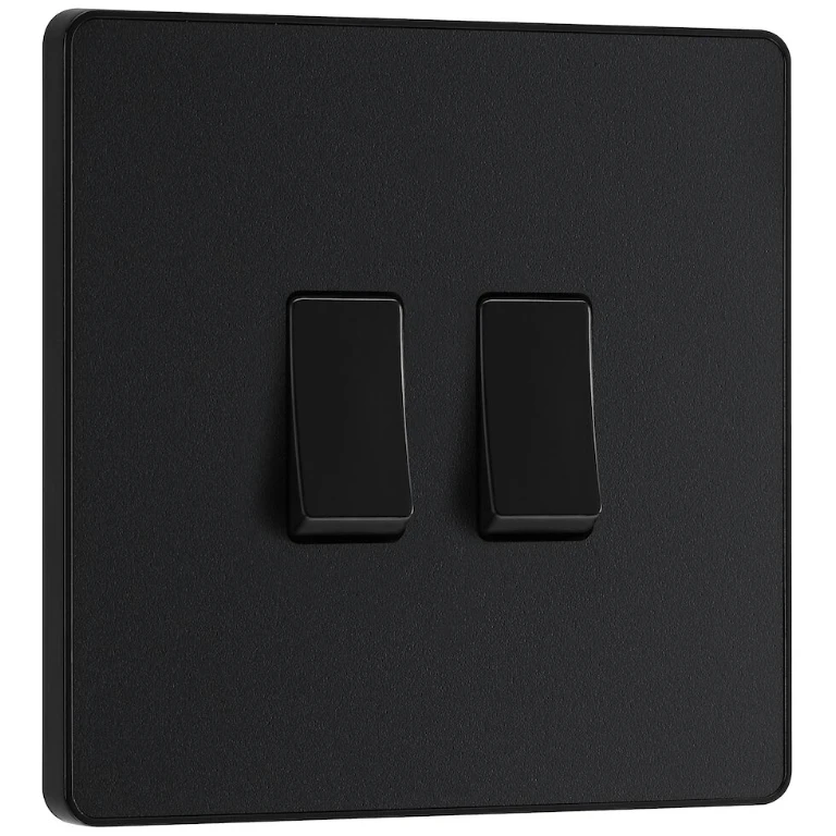 BG Evolve Matt Black Double Light Switch 20A 16Ax 2 Way – PCDMB42B