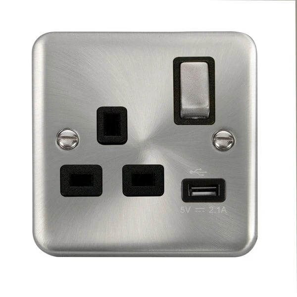 Click Scolmore Deco Plus Satin Chrome 1 Gang USB Outlet Switch 13A With Black Ingot – DPSC571BK