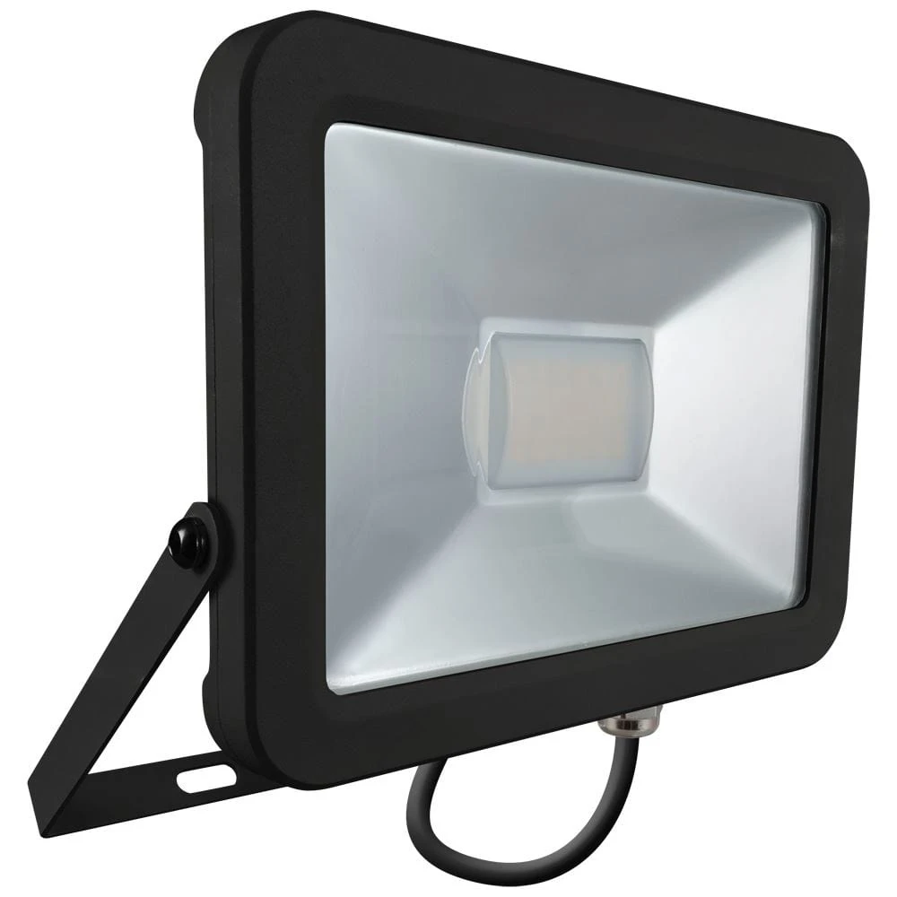 IP66 rated energy efficient integrated LED floodlight with slim profile. Features a diecast aluminium body with only 40mm depth and a standard black powder-coat finish. -20°C to +40°C ambient operating temperature.