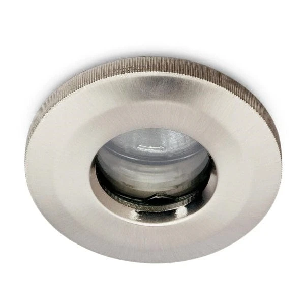 JCC Fireguard IP65 Showerlight with brushed nickel bezel.