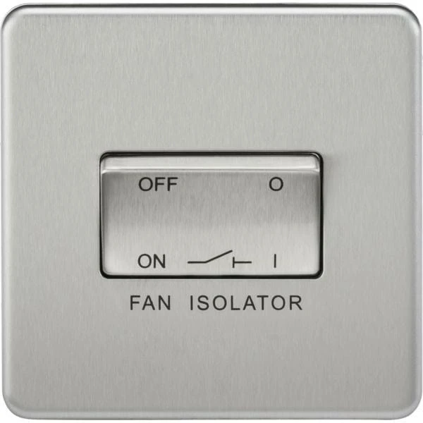 Ideal for providing a safe and simple method of isolating fan units in en-suite bathrooms, family bathrooms, utility rooms, store rooms etc. Often the fan unit will be wired into the lighting circuit for convenience and efficiency. With this kind of installation there is often a need to leave the lighting circuit live whilst isolating the fan for maintenance. Flawless Screwless low profile metal design with matching metal rocker.