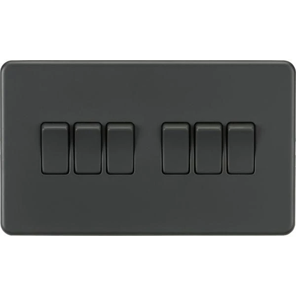 SKU: BGVKY 6891625349178 Categories: Light Switches, Switches & Sockets Tags: Allow Oversell Zero Stock: false, Back Box Depth (Minimum): 16, Brand: Knightsbridge, Condition: New, Countdown Timer: Remove Countdown Timer, Current: 10A, Delivery Cut Off: 1 to 3 Days, Depth: 148, Family: Wiring Accessories, Finish/Colour: Anthracite, Free Delivery: false, G:google_product_category: Hardware > Electrical Supplies > Electrical Switches > Light Switches, Gang: 6, Height: 88, IP Rating: IP20, Master Family: Switches and Sockets, Number of Poles: 2, Plate Colour: Decorative, Plate Depth: 4.3, Shopify Collection Tag: FULLPRICEITEMS, Switch Socket Type: Rocker Switch, Taxonomy Tag: Blanking Plates, Taxonomy Tag: Decorative Sockets & Switches, Taxonomy Tag: Switches & Sockets, Taxonomy Tag: Wiring Accessories, Voltage:number: 240, Warranty: 15 Year, Weight: 0.32, Width: 148