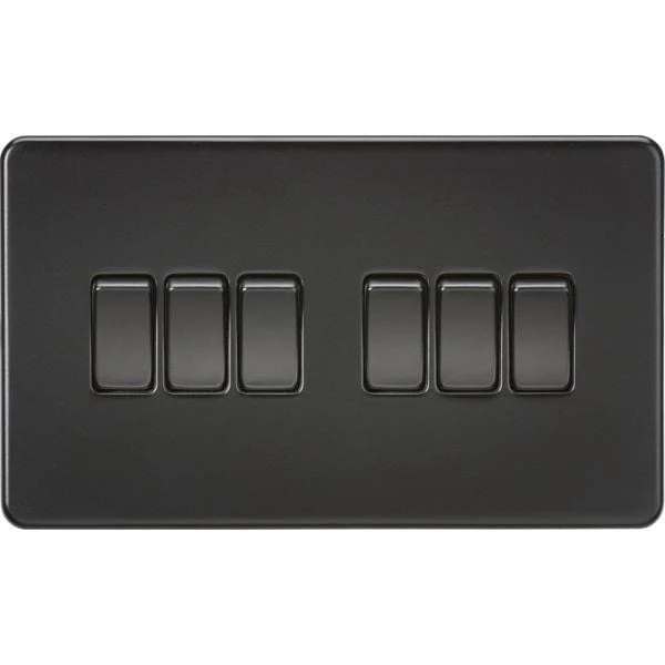 SKU: BGVKY 6891622694970 Categories: Light Switches, Switches & Sockets Tags: Allow Oversell Zero Stock: false, Back Box Depth (Minimum): 16, Brand: Knightsbridge, Condition: New, Countdown Timer: Remove Countdown Timer, Current: 10A, Delivery Cut Off: 1 to 3 Days, Depth: 148, Family: Wiring Accessories, Finish/Colour: Black, Free Delivery: false, G:google_product_category: Hardware > Electrical Supplies > Electrical Switches > Light Switches, Gang: 6, Height: 88, IP Rating: IP20, Master Family: Switches and Sockets, Number of Poles: 2, Plate Colour: Decorative, Plate Depth: 4.3, Shopify Collection Tag: FULLPRICEITEMS, Switch Socket Type: Rocker Switch, Taxonomy Tag: Blanking Plates, Taxonomy Tag: Decorative Sockets & Switches, Taxonomy Tag: Switches & Sockets, Taxonomy Tag: Wiring Accessories, Voltage:number: 240, Warranty: 15 Year, Weight: 0.32, Width: 148