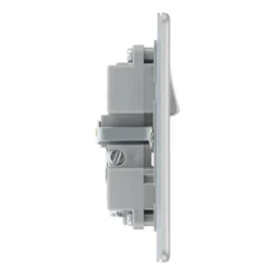 BG Screwless Flatplate Brushed Steel Single Switched 13A Power Socket With Usb Charging – 2X Usb Sockets (2.1A) – Grey Insert –
