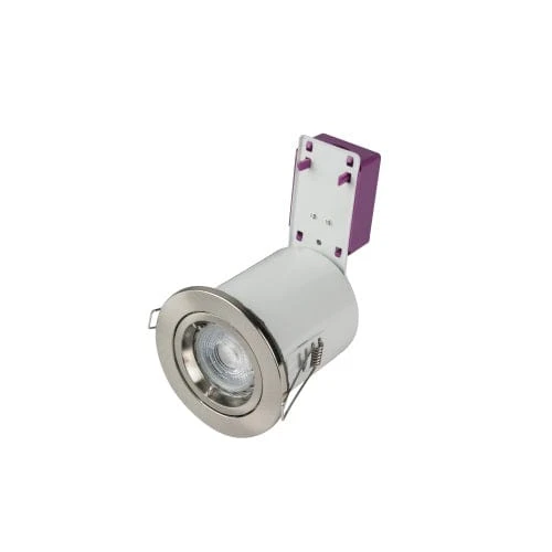 The Robus RSF201-13 is a Brushed Chrome mains voltage fire-rated downlight with a pressed steel body and front bezel. The IP20 rated product is compatible with GU10 Halogen, CFL & LED bulbs.