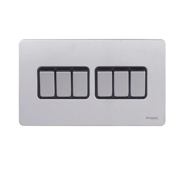 SKU: BGVKY 6911474368570 Categories: Light Switches, Switches & Sockets Tags: Allow Oversell Zero Stock: false, Brand: Schneider, Collection Name: Ultimate Screwless Flat Plate, Condition: New, Countdown Timer: Next Working Day Delivery, Delivery Cut Off: 3PM, Depth: 24, Family: Wiring Accessories, Finish/Colour: Stainless Steel, Free Delivery: false, G:google_product_category: Home & Garden > Lighting > Light Bulbs > LED Light Bulbs, Gang: 6, Height: 24, IP Rating: IP20, Length: 148, Master Family: Switches and Sockets, Material: Metal, Shopify Collection Tag: FULLPRICEITEMS, Switch Socket Type: Rocker Switch, Taxonomy Tag: Blanking Plates, Taxonomy Tag: Switches & Sockets, Taxonomy Tag: Wiring Accessories, Warranty: 18 Month, Weight: 0.3, Width: 88