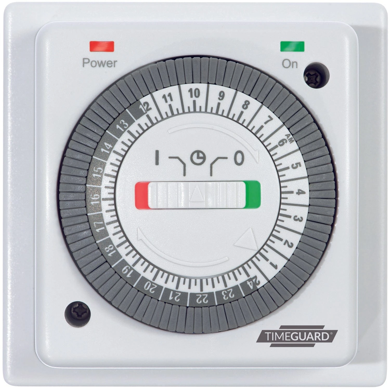 - Special ‘Traffic Light’ slider switch for easy ON (green), Auto (green & red) and OFF (red) mode indication