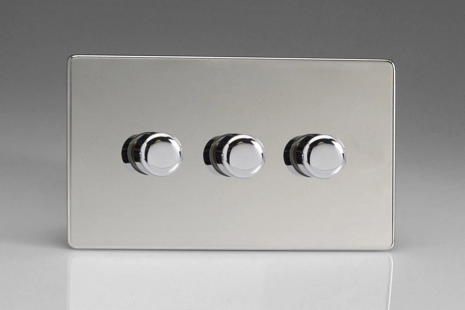 3-Gang 2-Way Push-On/Off Rotary LED Dimmer 3 x 0-120W (1-10 LEDs) (Twin Plate)